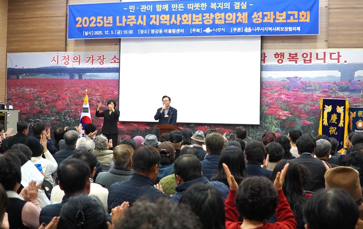 [국회의정저널] 전남 나주시는 지난 5일 영강동 어울림센터에서 ‘2025년 나주시지역사회보장협의체 성과보고회’를 개최하고 한 해 동안 민‧관이 협력해 추진해 온 다양한 복지 성과를 돌아보는 뜻깊은 시간을 가졌다.
