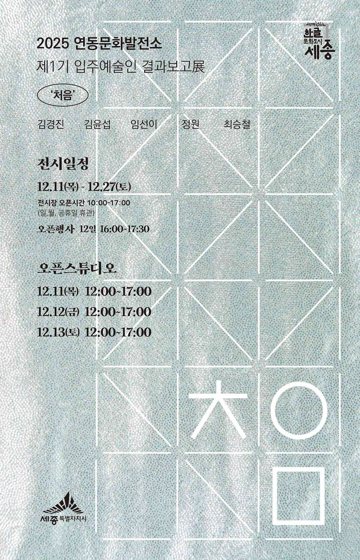 [국회의정저널] 세종특별자치시가 오는 27일까지 연동문화발전소에서 제1기 입주예술인 결과보고전 ‘처음’을 선보인다.