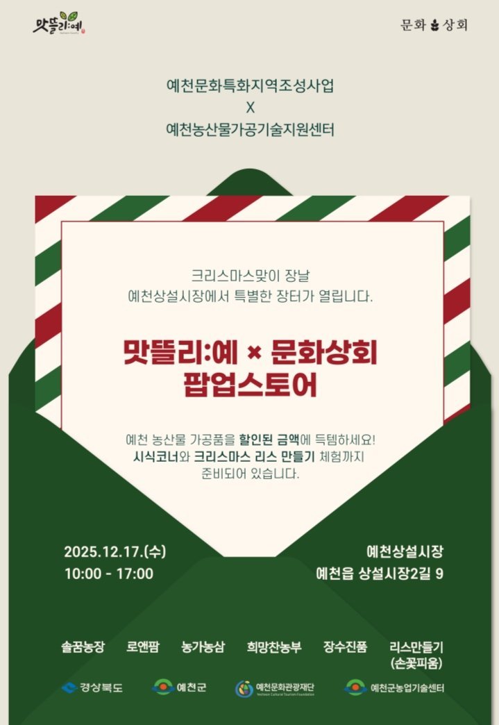 행사는 17일 오전 10시부터 오후 5시까지 예천읍 상설시장 내 ‘문화상회’에서 진행된다.