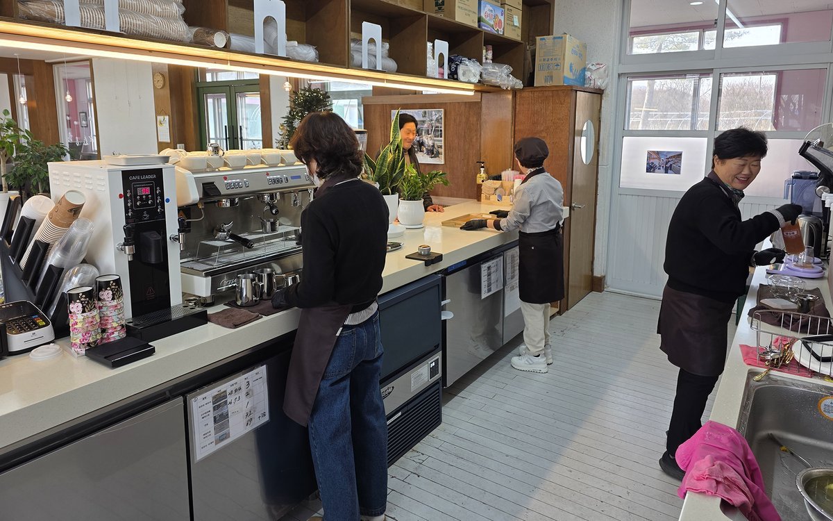 어르신들은 커피와 음료 제조, 매장 관리 등 카페 운영 전반을 담당하며 방문객에게 친절한 서비스를 제공했다.