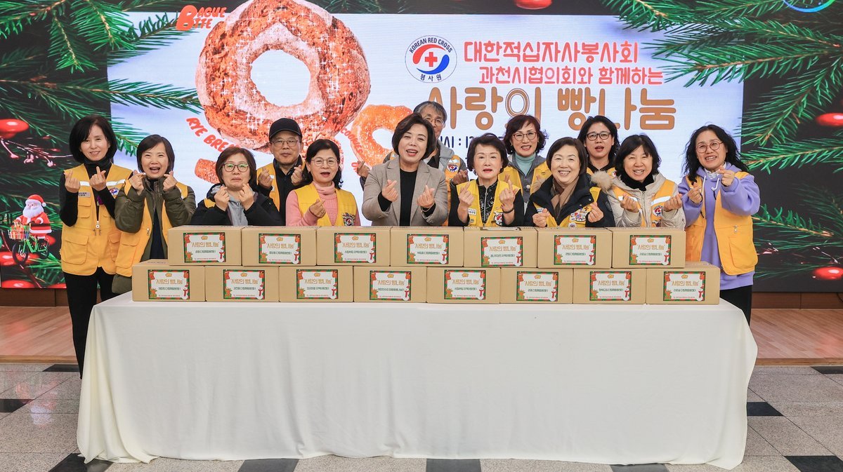 이날 ‘대한적십자사 과천지구협의회’정연자 회장을 비롯한 회원 11명이 과천시청을 방문해 정성껏 준비한 빵을 기부했으며, 전달식에는 신계용 과천시장과 ‘대한적십자봉사회 과천지구협의회’회원들이 참석해 감사의 마음을 나누며 나눔을 실천했다.