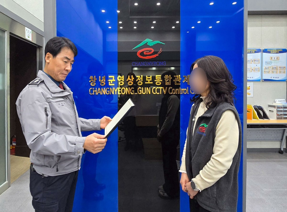 [국회의정저널] =창녕군은 12일 창녕군 영상정보통합관제센터 관제요원이 창녕경찰서로부터 범죄 예방과 군민 안전에 기여한 공로로 감사장을 수여받았다고 밝혔다.