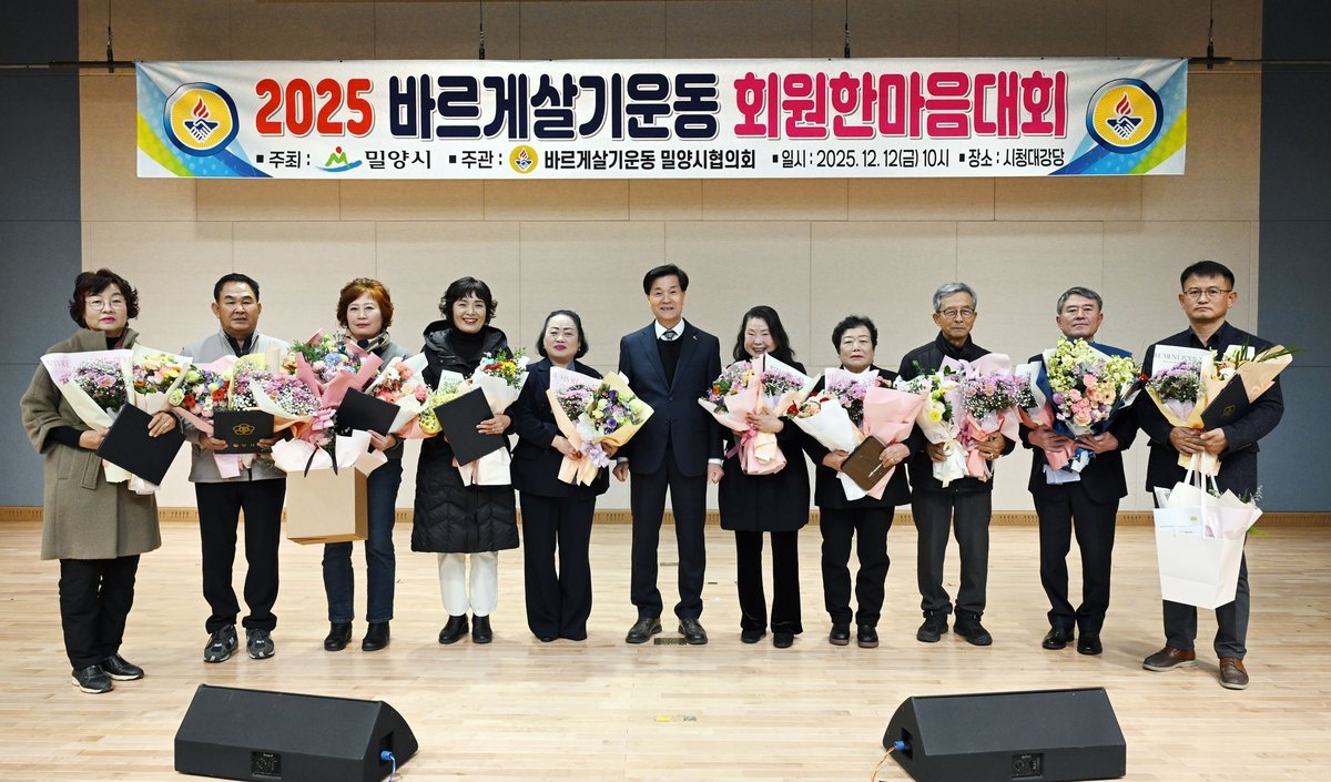 [국회의정저널] 바르게살기운동 밀양시협의회가 주관한 ‘2025년 바르게살기운동 밀양시협의회 회원 한마음대회’가 12일 시청 대강당에서 성황리에 개최됐다.