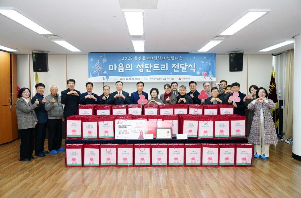 [국회의정저널] 서울 성북구 종암동교회연합회는 성탄을 앞둔 지난 11일 종암동주민센터 3층 이육사홀에서 ‘2026 희망온돌 따뜻한 겨울나기’사업을 통해 중증질환으로 어려움을 겪는 관내 취약계층 140가구를 지원해 달라며 성금 1400만 원과 홍삼세트 140개를 기탁했다.
