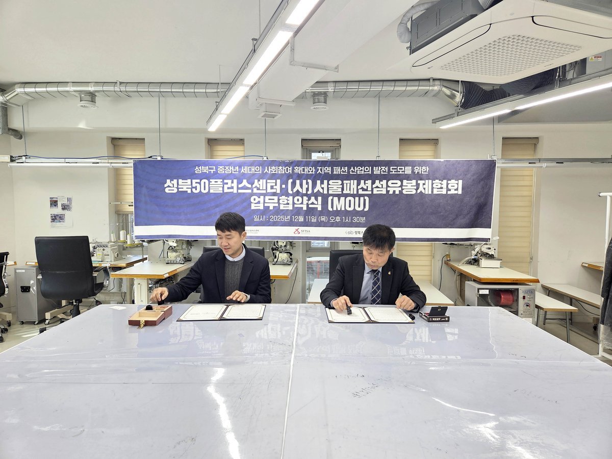 이번 협약은 성북구 대표 기간산업인 패션·봉제 분야에 디지털 전환 흐름을 접목하고, 중장년층이 산업 변화에 맞는 역량을 갖추도록 지원하기 위한 것이다.