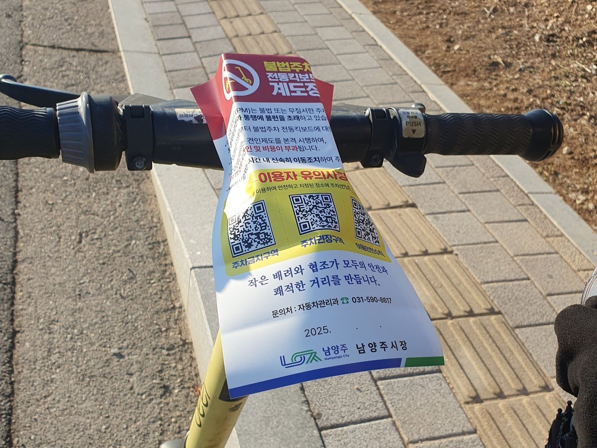 시는 불법주차가 빈번한 생활권·역세권·학교 주변 250여 곳을 집중 관리구역으로 지정해, 이들 지역에서 불법주차된 전동킥보드 2500여 대에 계도장을 부착하고 업체에 신속한 수거를 요청하는 등 현장 순찰을 강화했다.