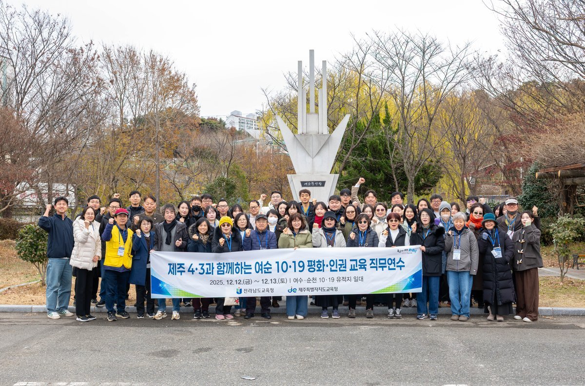 [국회의정저널] 전라남도교육청과 제주특별자치도교육청은 12~13일 여수 순천 10·19 유적지에서 전남·제주 교원들이 함께하는 직무연수를 운영하며, 우리 현대사의 아픔을 성찰하는 평화·인권 교육을 학교 현장에 뿌리내리는 데 힘을 모으고 있다.