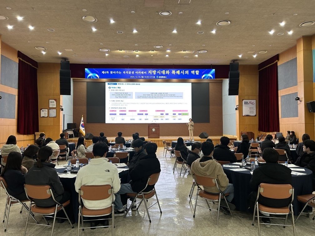 [국회의정저널] 창원특례시는 15일 시청 시민홀에서 ‘2025년 제6차 찾아가는 자치분권 아카데미 특강’을 개최했다.