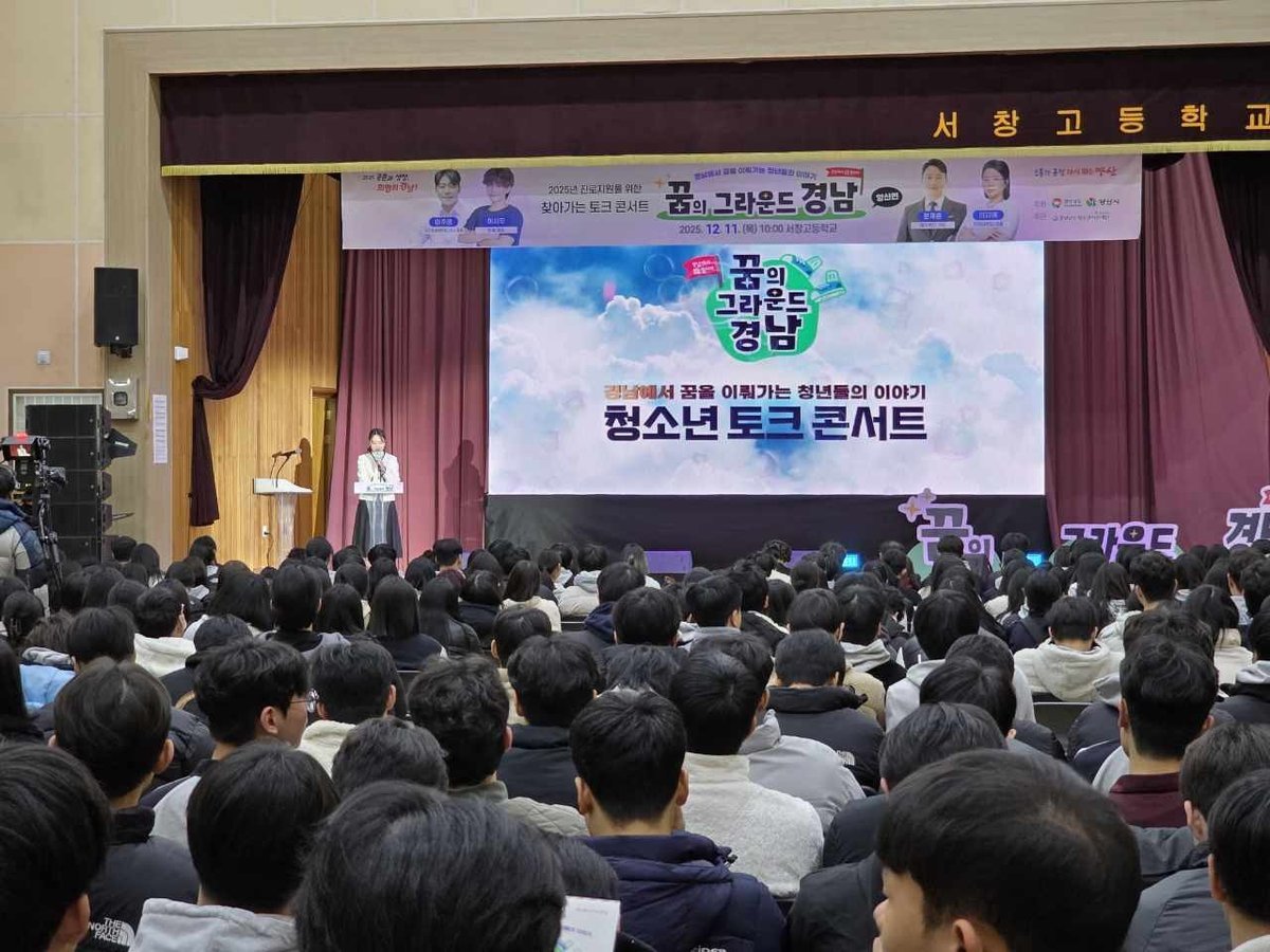 [국회의정저널] 양산시와 경상남도는 지난 11일 경상남도청소년지원재단과 함께 서창고등학교 실내체육관에서 청소년 300여명이 참여한 가운데 ‘2025년 진로지원 찾아가는 토크콘서트’를 개최했다.