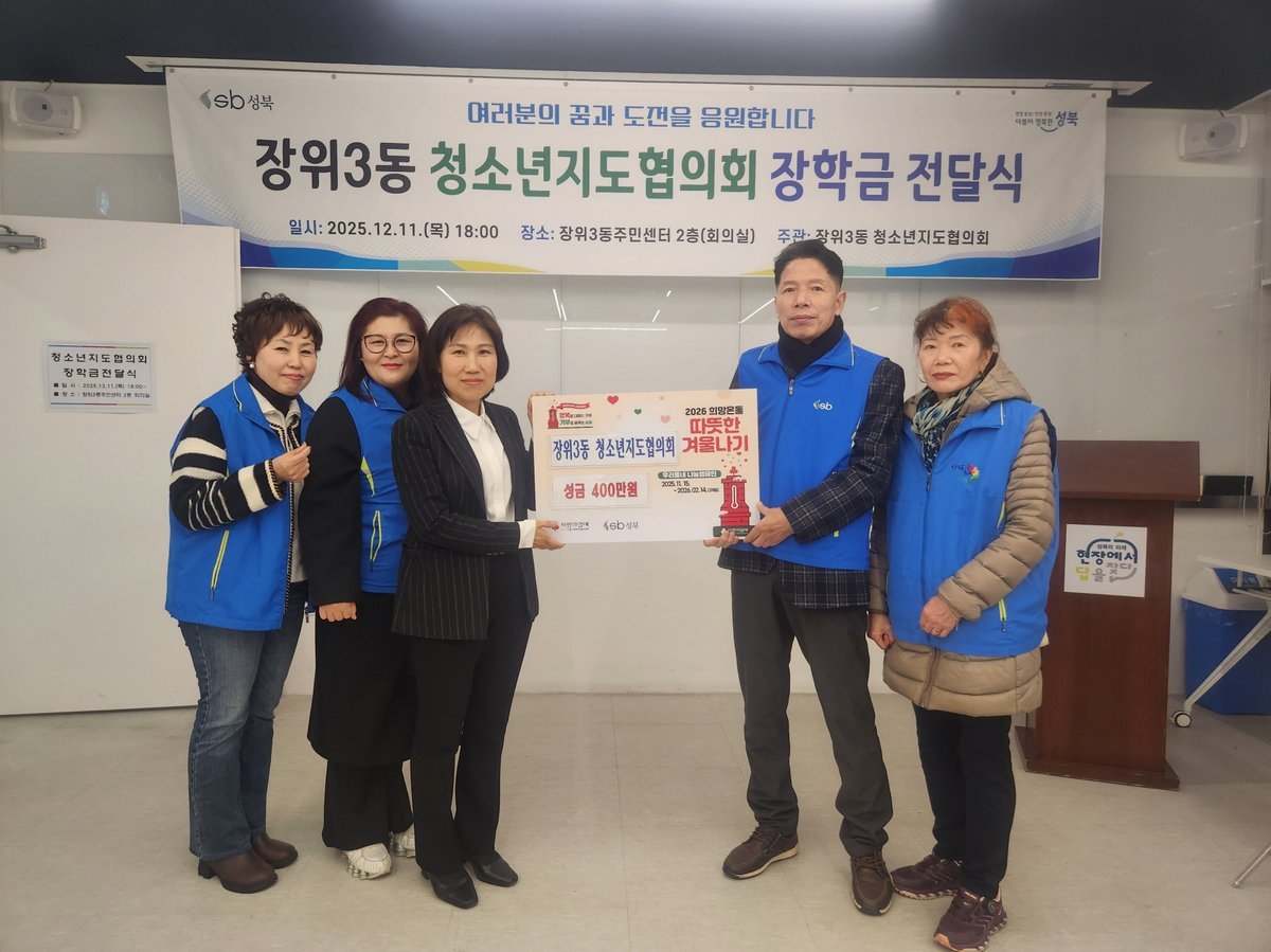 김연호 장위3동 청소년지도협의회장은 “청소년은 지역사회의 미래이자 희망”이라며 “이번 장학금이 학생들의 학업과 진로에 도움이 되기를 바란다”고 말했다.