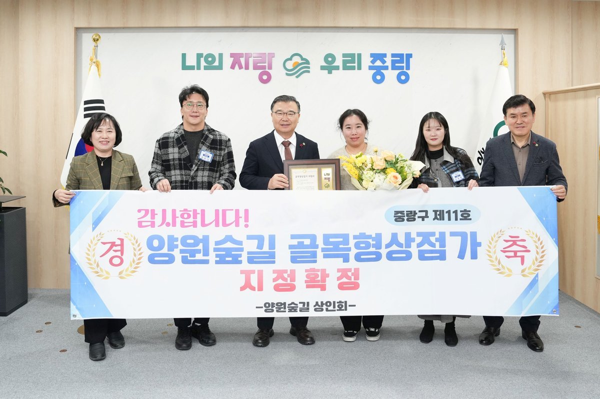 [국회의정저널] 중랑구 는 △ 양원숲길 △ 동부시장 백구단길 △ 동부시장 미드랑길 을 제 11·12·13호 골목형상점가로 신규 지정하고, 12월 15일 ‘골목형상점가 지정서 수여식 ’을 개최했다.