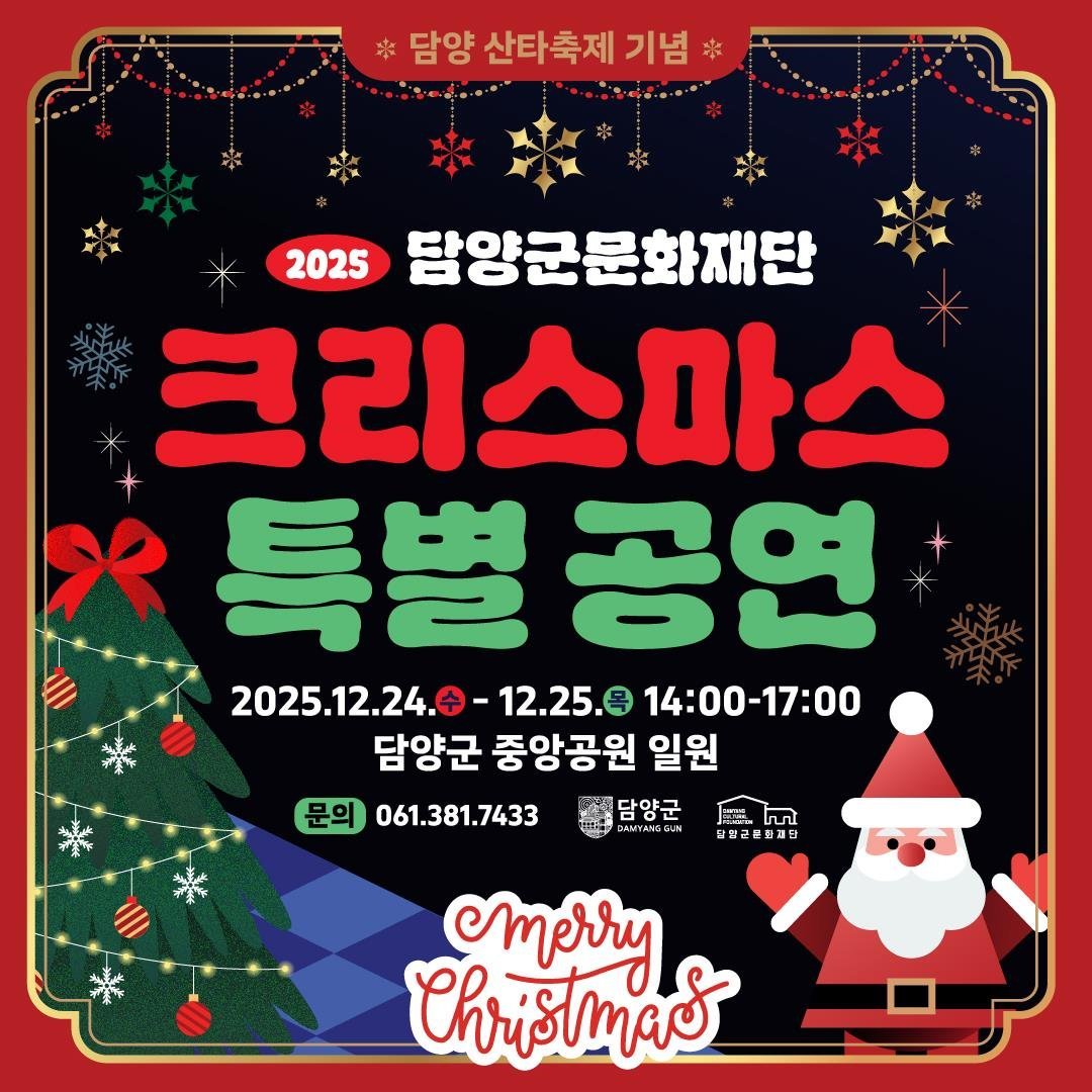 [국회의정저널] 담양군문화재단은 연말연시를 맞아 ‘제7회 담양산타축제’와 연계한 ‘2025 크리스마스 특별 공연’을 12월 24일부터 25일까지 이틀간 담양읍 중앙공원 일원에서 개최한다.
