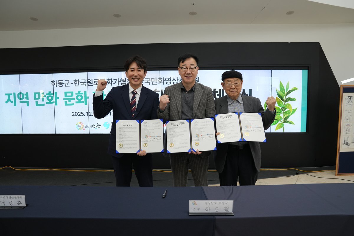 하동군은 지난 11일 한국만화영상진흥원, 한국원로만화가협회와 국내 만화 발전 및 지역 만화 문화 확산을 위한 업무협약을 체결했다고 밝혔다.