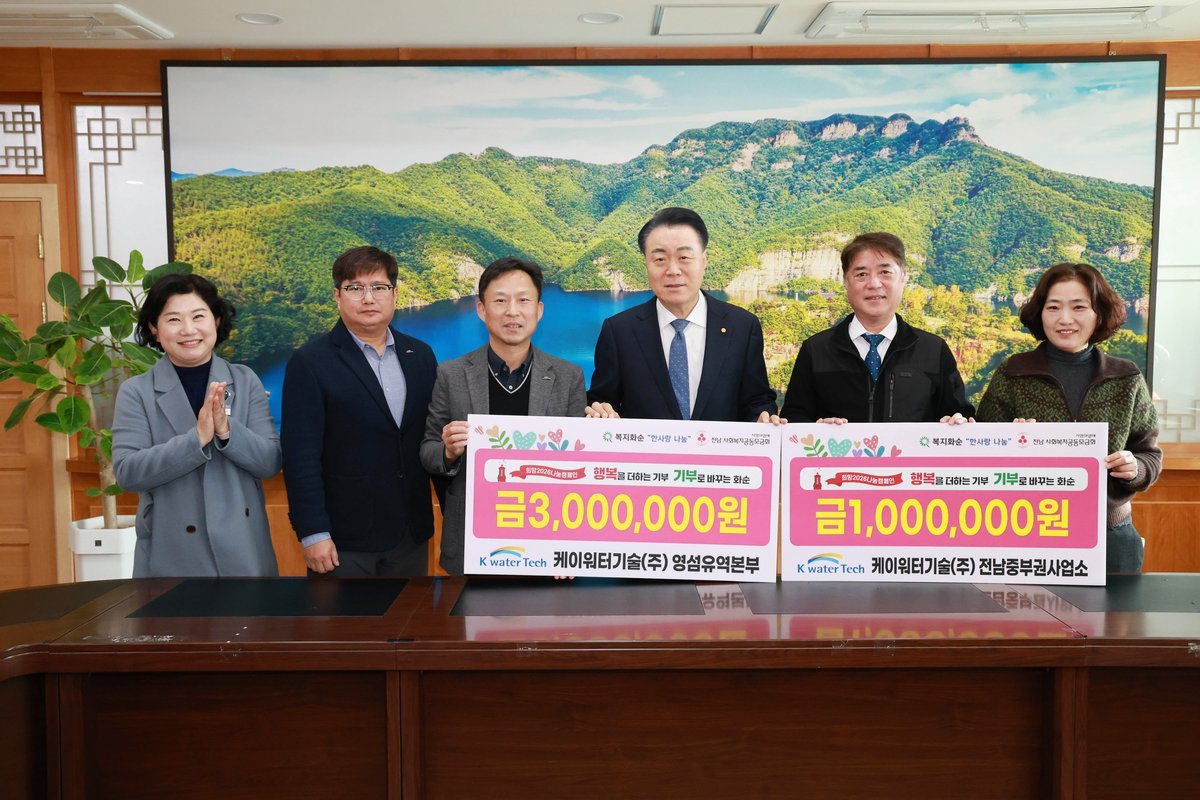 허선심 사회복지과장은 “이웃을 생각하는 따뜻한 마음, 마음을 나누려는 행동을 직접 보여 주신 케이워터기술 영·섬유역본부와 전남중부권사업소 관계자분들께 감사의 말씀을 드린다”라며, “이러한 나눔 사례는 널리 알려 겨울철 복지 위기 가구를 적극 발굴하고, 소외 없는 군민 만들기에 힘쓰겠다”라고 말했다.