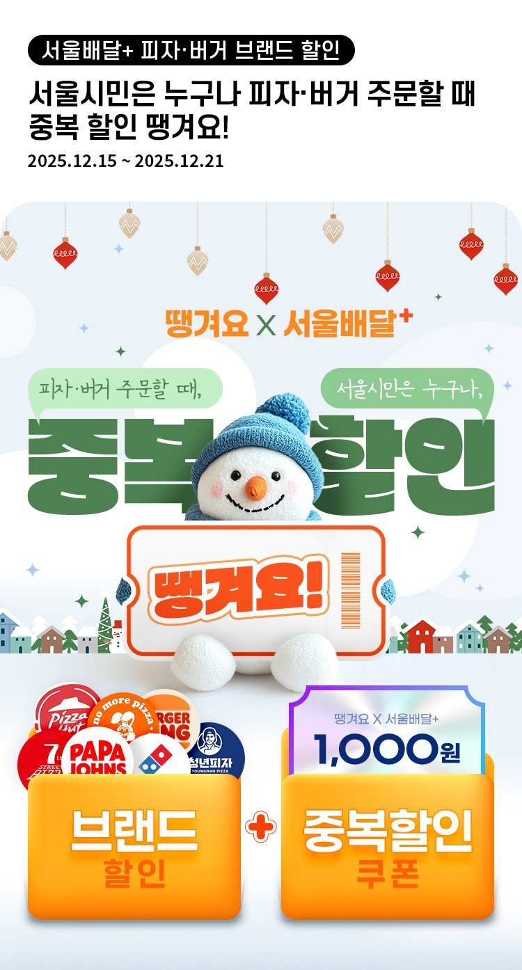 ‘서울배달+땡겨요’ 피자·버거 브랜드 할인 포스터