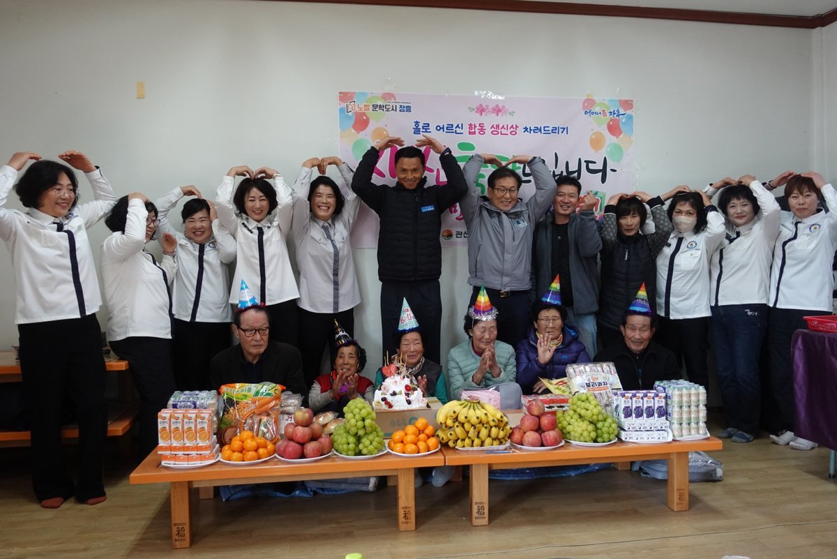 독거 어르신 합동 생신상 사업은 전남사회복지공동모금회 지정기탁사업으로 관산읍여성자율방범대의 자원봉사 로 추진되었으며 올해 통틀어 총 4회, 27명의 어르신을 대상으로 생신을 축하했다.