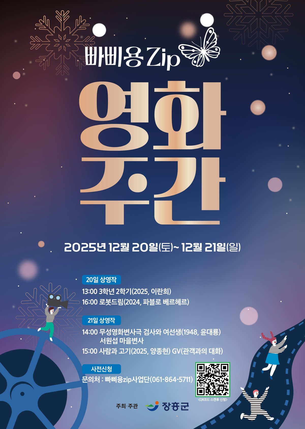 [국회의정저널] 장흥 빠삐용Zip에서 오는 12월 20일과 21일 이틀간 ‘영화주간’영화 상영회를 개최한다.