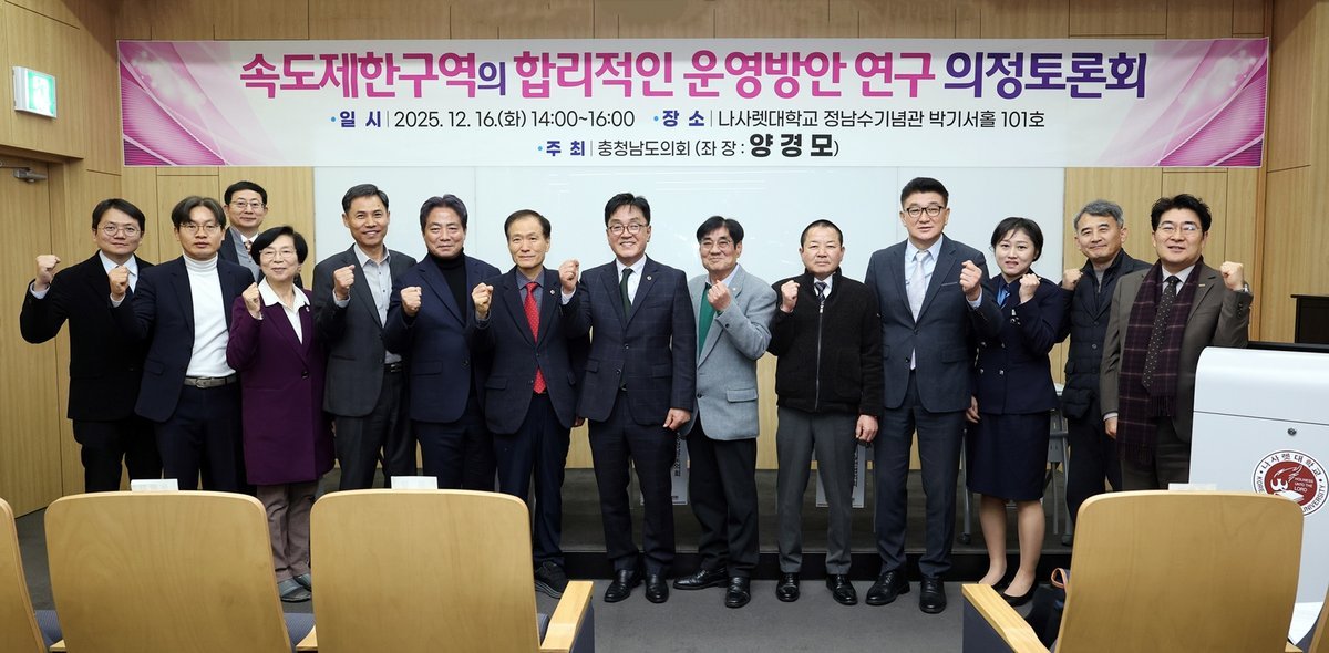[국회의정저널] 충남도의회는 16일 나사렛대학교 정남수기념관 박기서홀에서 ‘속도제한구역의 합리적인 운영 방안 연구’를 주제로 의정토론회를 열었다.