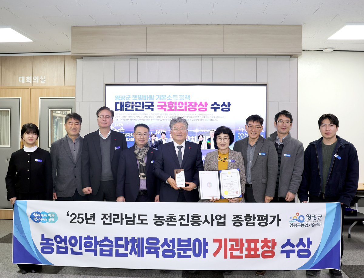 영광군, 2025년도 전라남도 농촌진흥사업 종합평가 ‘농업인 학습단체 육성분야’우수기관 수상