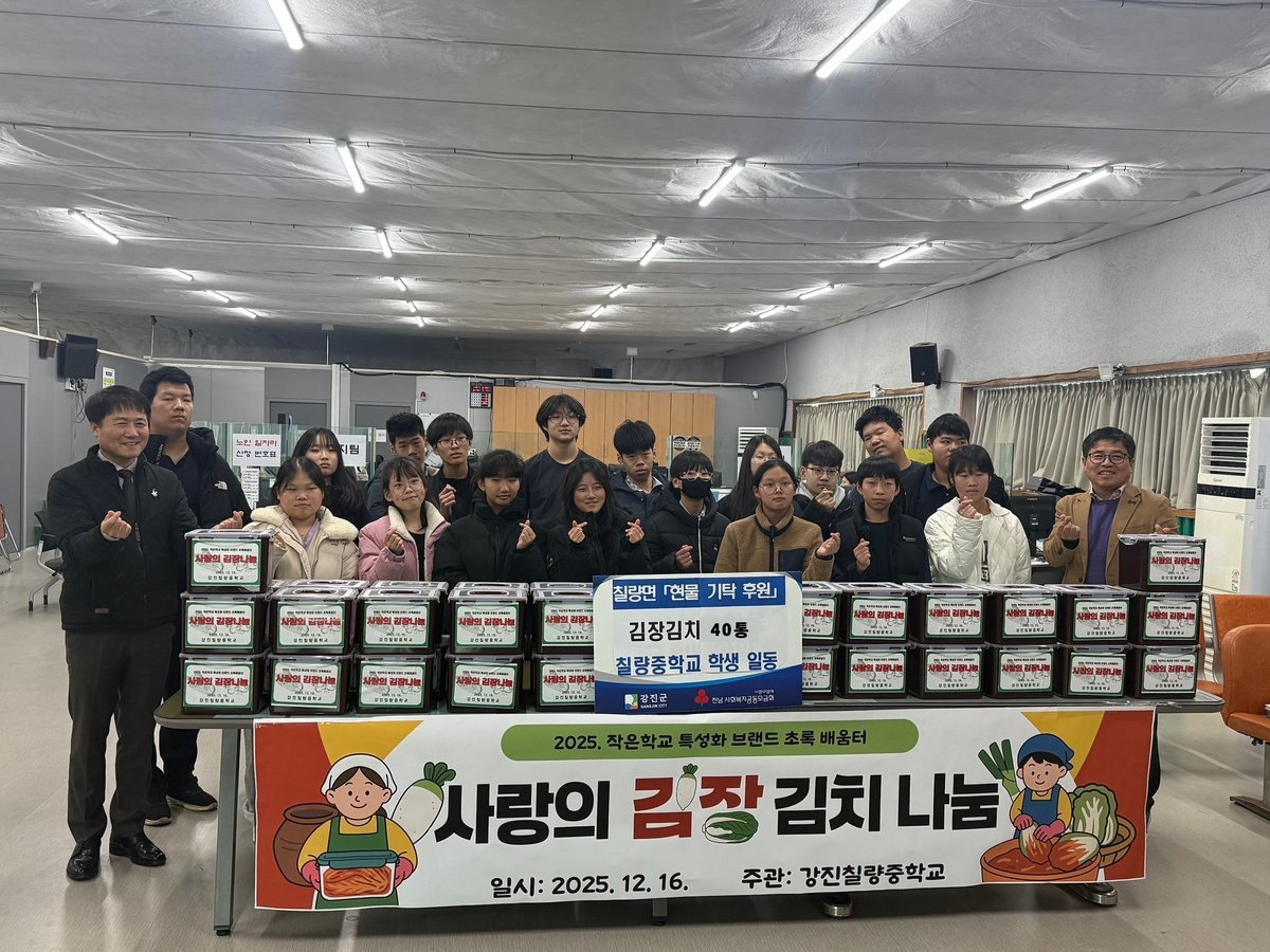 칠량중학교 학생들, 연말 맞아 따뜻한 김장 나눔 실천 (강진군 제공)