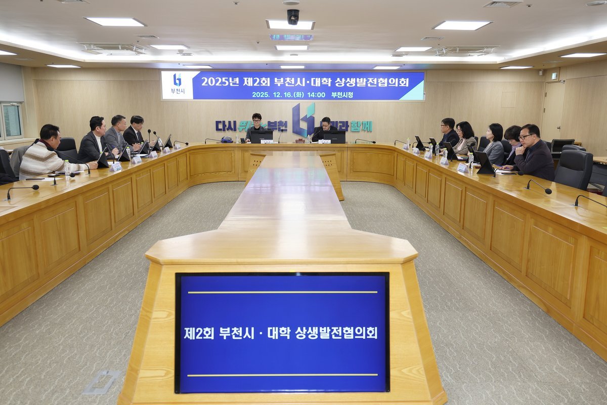 [국회의정저널] 부천시는 지난 16일 부천시청 창의실에서 가톨릭대학교, 부천대학교, 서울신학대학교, 유한대학교 등 관내 4개 대학과 부천산업진흥원, 부천상공회의소, 부천강소기업협의회 등 주요 산학 기관 관계자들이 참석한 가운데 ‘2025년 제2회 부천시‧대학 상생발전협의회’를 열었다.