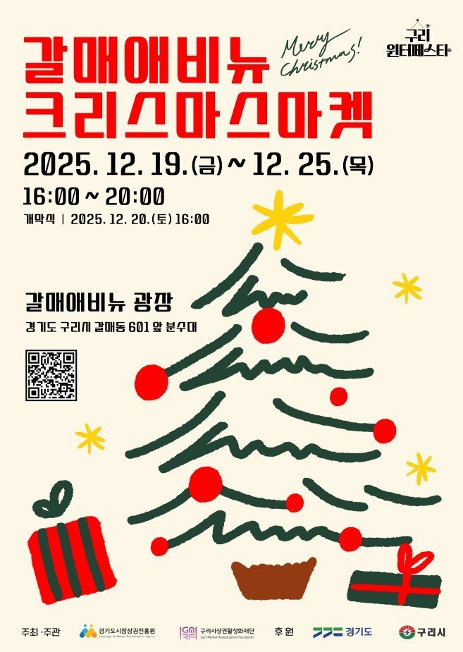 [국회의정저널] 구리시상권활성화재단은 오는 12월 19일부터 25일까지 갈매 애비뉴 광장에서 ‘2025 구리윈터페스타–갈매애비뉴 크리스마스 마켓’을 개최한다고 밝혔다.