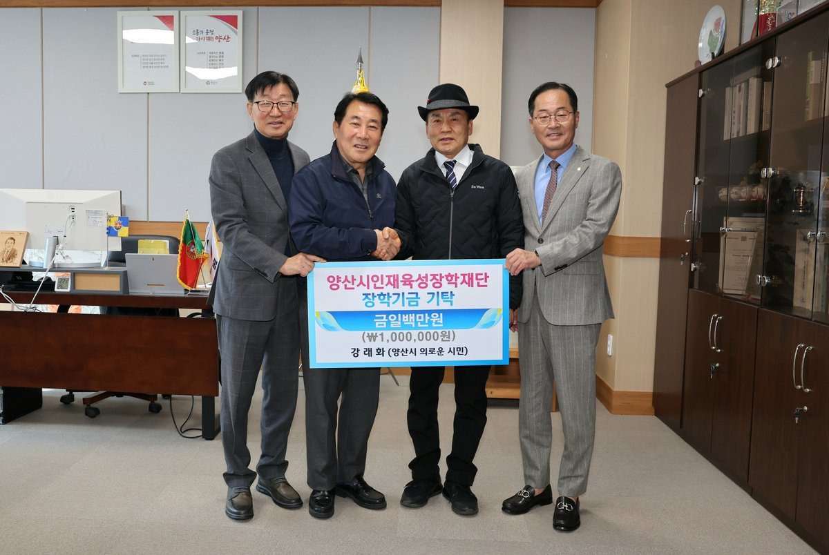 의로운 시민 강래화 씨, 위로금 전액 장학금 기탁 (양산시 제공)