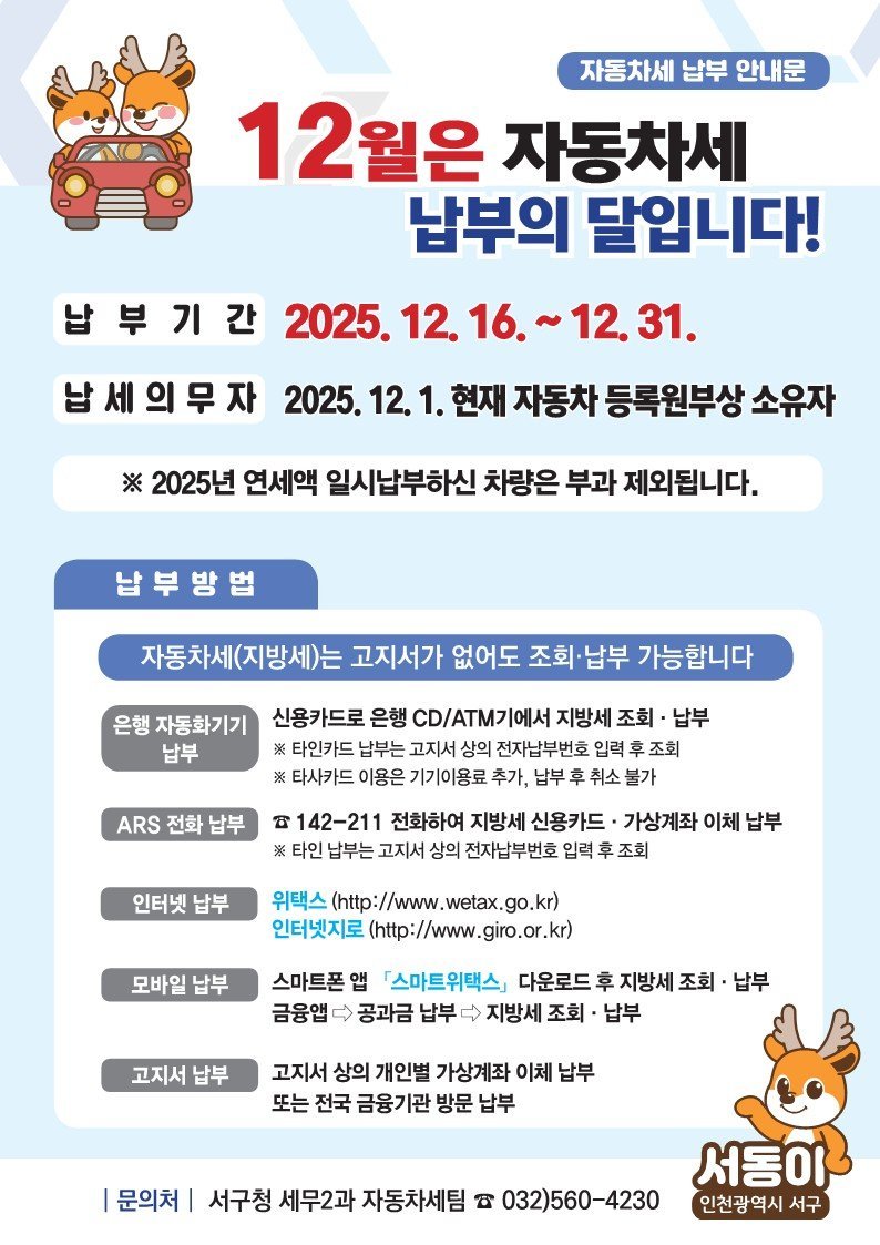 인천 서구, 12월은 자동차세 납부의 달 (인천서구 제공)