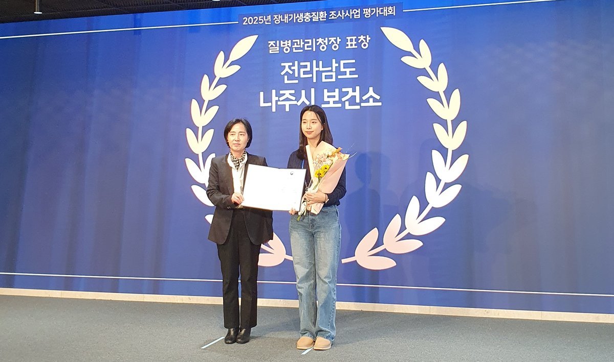 나주시보건소 질병관리과는 지난 11일 질병관리청이 주최한 ‘2025년 장내기생충 조사사업 평가대회’에서 우수 기관으로 선정돼 질병관리청장 표창을 받았다고 17일 밝혔다.