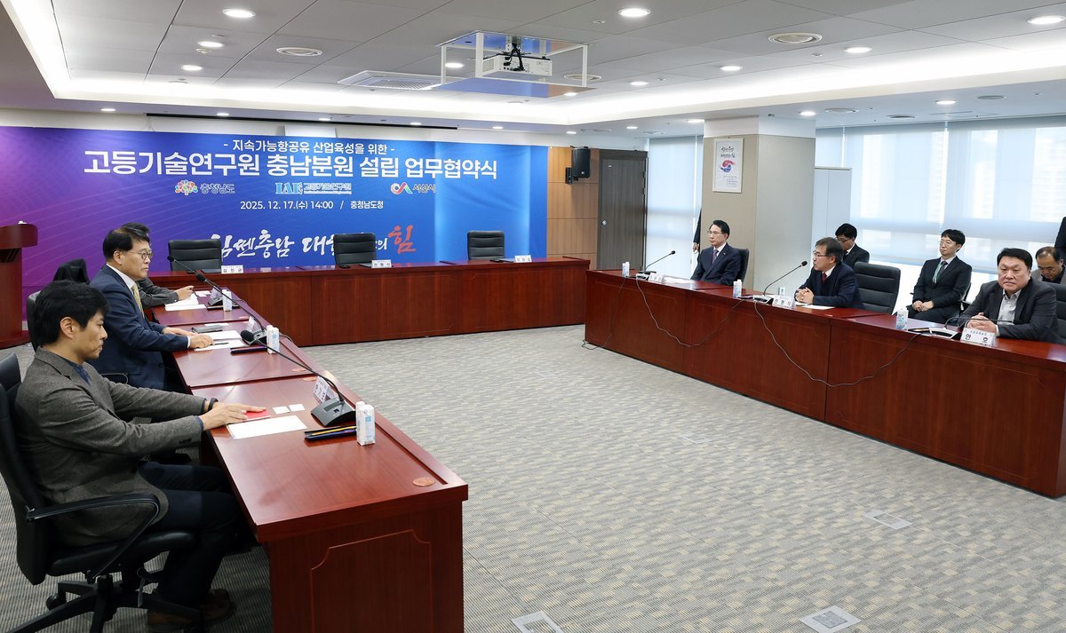 협약에는 충남도, 서산시, 고등기술연구원이 참여했으며, 각 기관은 고등기술원 충남분원 설립을 중심으로 지속가능항공유 산업의 전략적 육성과 상용화를 위해 상호 협력하기로 했다