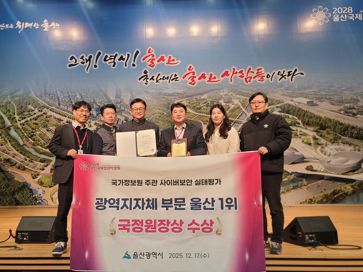 [국회의정저널] 울산시는 국가정보원이 실시한 ‘2025년 사이버보안 정기포상’에서 기관·단체 분야 국정원장상을 수상했다고 밝혔다.