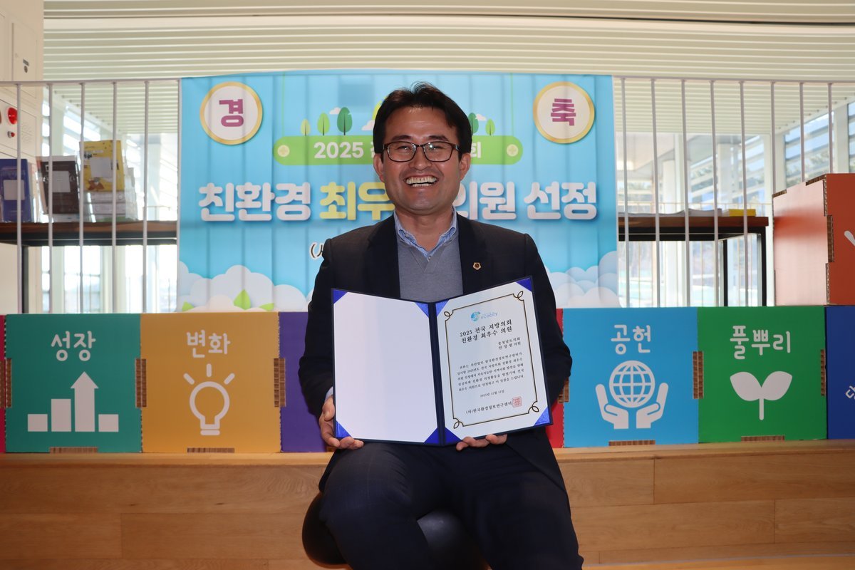 [국회의정저널] 안장헌 충남도의원이 2년 연속 한국환경정보센터가 주최한 ‘2025 전국지방의회 친환경 최우수의원’으로 선정됐다.