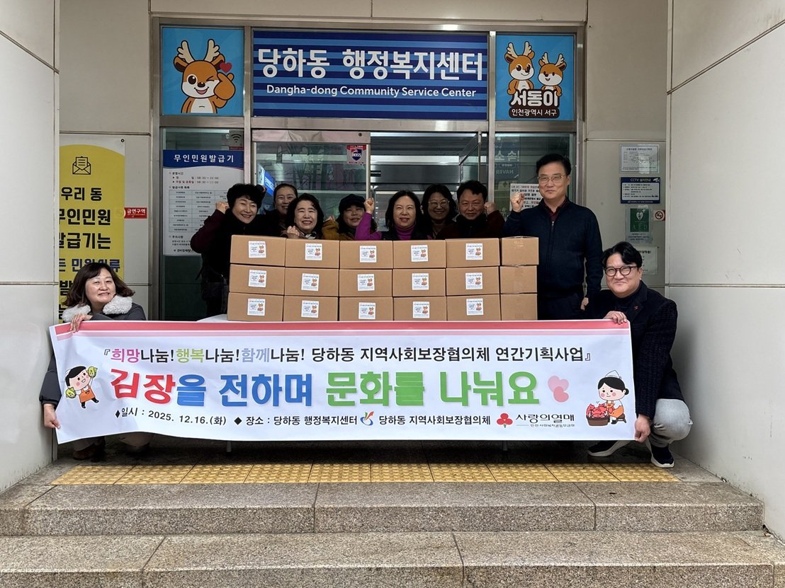 한편 공동위원장인 이미숙 당하동장은 “이번 김장김치 지원을 통해 도움이 필요한 주민들이 따뜻한 겨울을 보내는 데 보탬이 되길 바라며, 민관이 함께하며 체감도 높은 복지사업을 이어가겠다”라고 전했다.