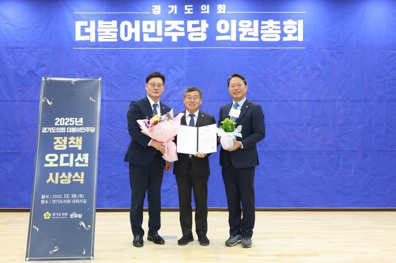 [국회의정저널] 경기도의회 장대석 의원은 18일 열린 ‘2025년 경기도의회 더불어민주당 정책 오디션 시상식’에서 우수상을 수상했다.
