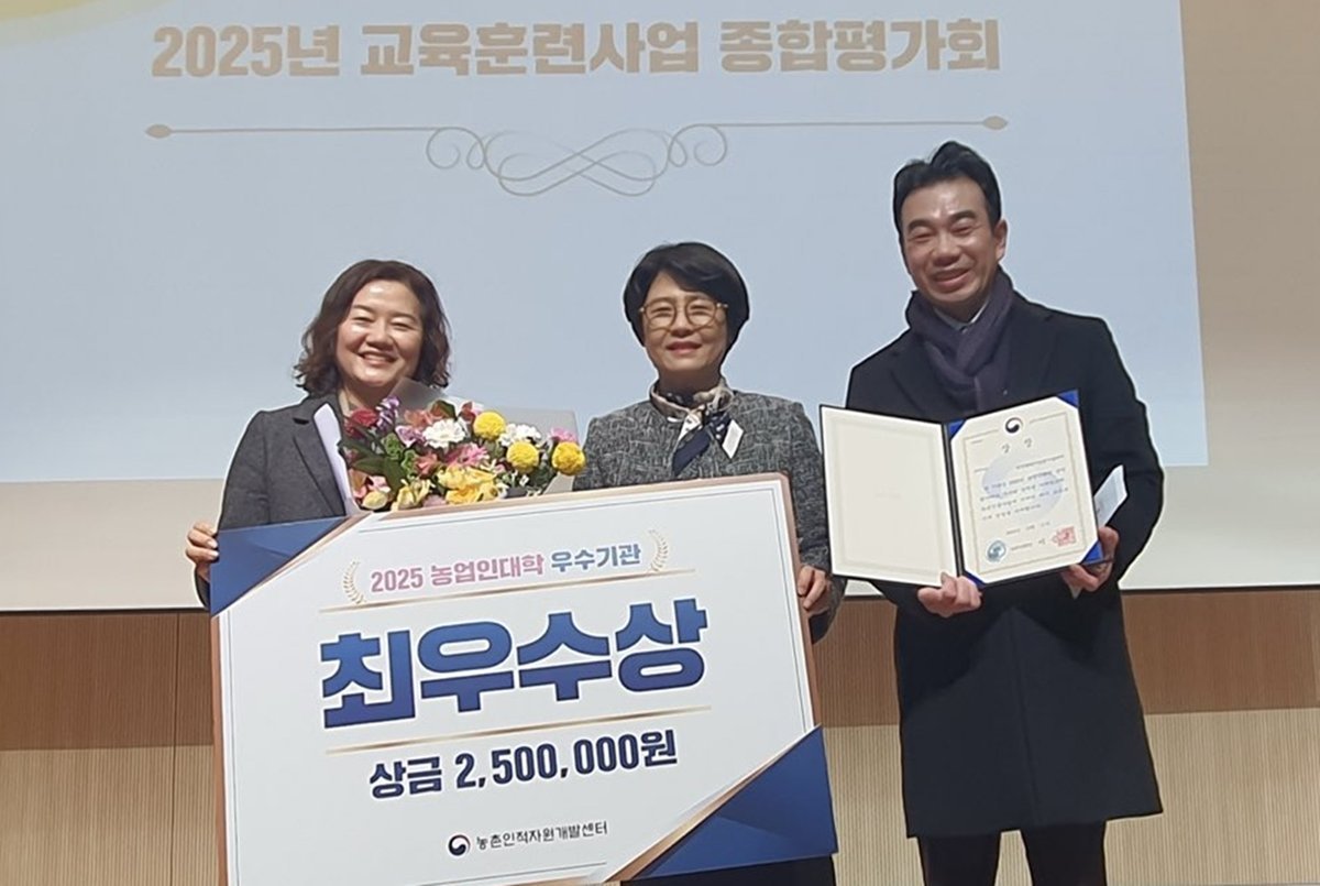 또한 농업인대학은 교육과정의 독창성과 국가 농업정책 연계, 청년․여성농업인 참여 확대 등 교육 운영의 내실을 인정받아 농업인대학 우수기관 최우수상에 선정됐으며, 지역 여건에 맞춘 맞춤형 교육을 통해 미래 농업 인재 양성의 핵심 거점 역할을 하고 있다.