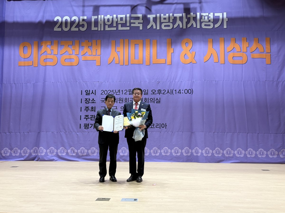 이번 수상은 지방의회가 단순한 심의·의결 기구를 넘어, 지역 문제 해결의 정책 플랫폼으로 기능해야 한다는 점을 다시 한 번 부각시키는 계기가 될 것으로 기대된다.