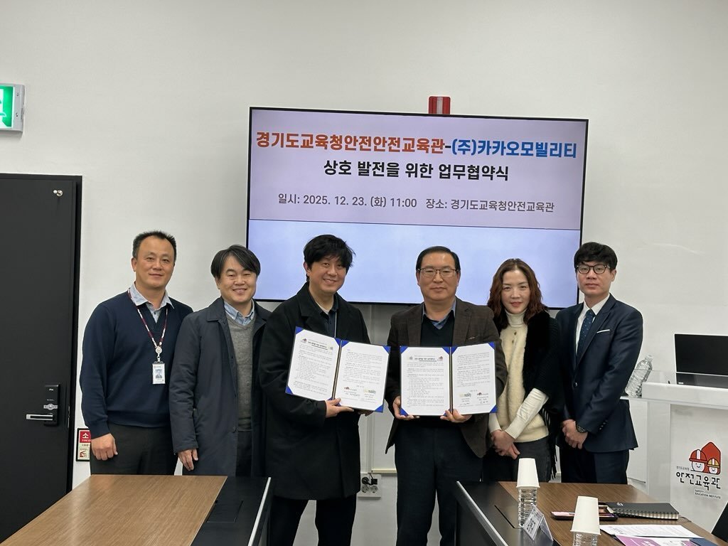 [국회의정저널] 경기도교육청안전교육관이 23일 ㈜카카오모빌리티와 교통안전 및 학생안전 교육 분야 발전을 위해 업무협약을 체결했다.