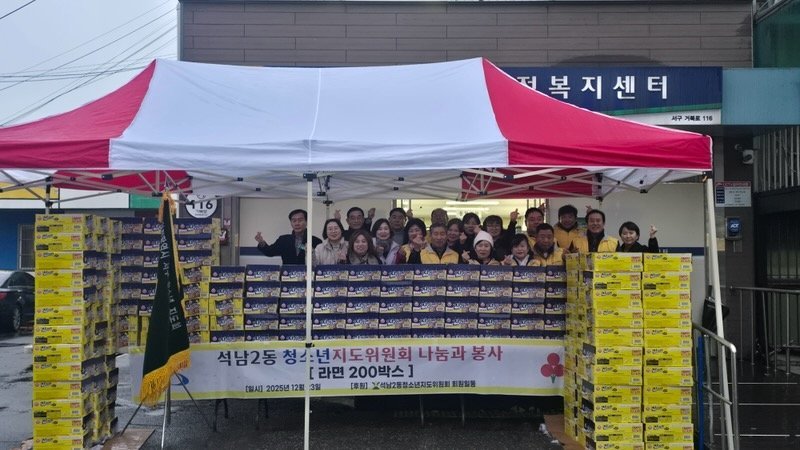 [국회의정저널] 석남2동 청소년지도위원회은 지난 23일 지역 내 저소득층을 돕기 위해 라면 200박스를 기탁하는 ‘사랑의 라면 기탁 행사’를 개최했다.