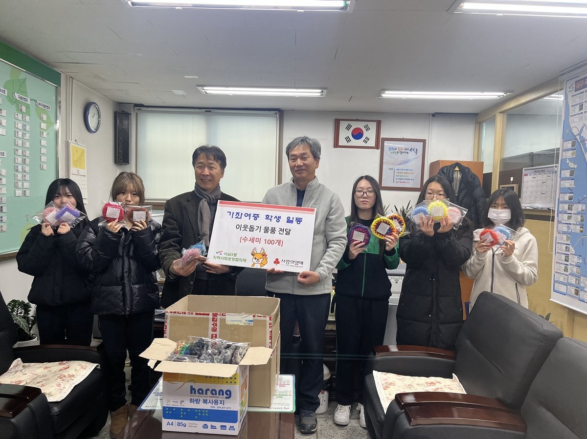 이날 전달식에 참석한 인천가좌여자중학교 김준희 교장은 “좋은 일에 쓰이는 수세미와 냄비받침대를 직접 만들어 학생들이 뿌듯한 보람을 느꼈다. 학생들이 정성스럽게 만든 물품이 석남3동 이웃들에게 따뜻한 위로가 되었으면 좋겠다”라고 말했다.