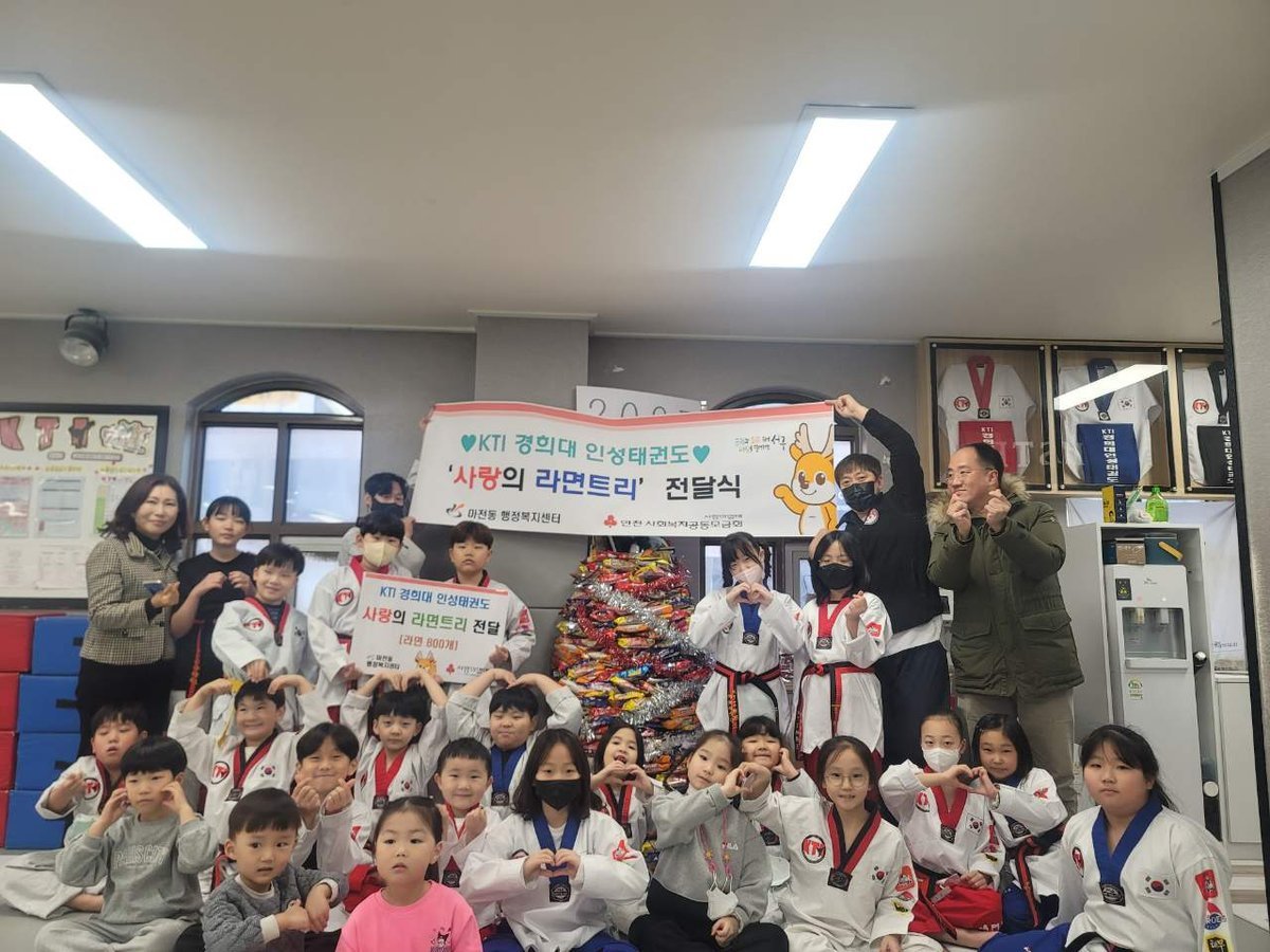 KTI 경희대 인성 태권도 학원은 원생들이 각 가정에서 가져온 라면 800개로 트리를 쌓았고, 완성된 ‘라면 트리’를 지역의 어려운 이웃들에게 따뜻한 마음과 함께 기탁하였다.