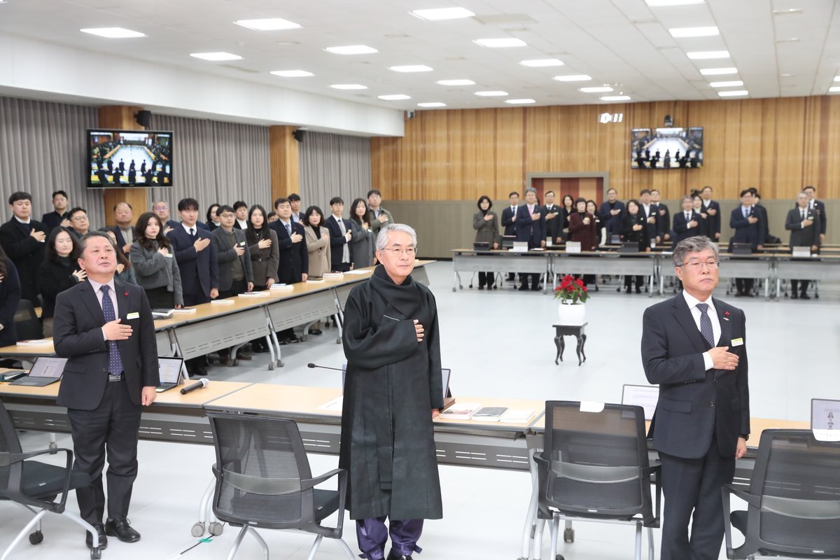 이날 시무식에서는 1월 1일 자 인사이동에 따른 부서장과 전입 직원을 소개하고, 교육감의 신년 인사말이 이어졌다.