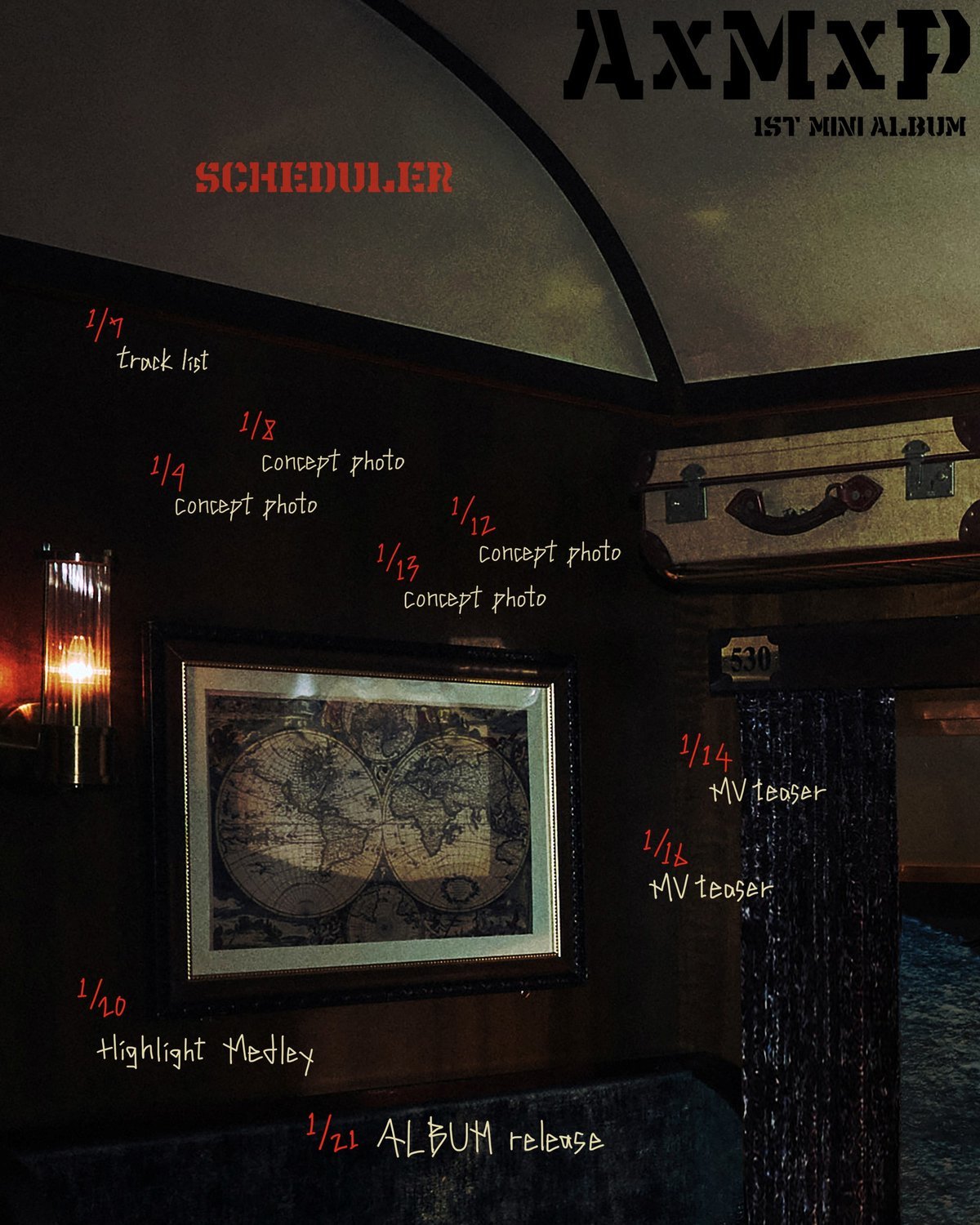공개된 이미지는 열차의 객실 내부 공간을 배경으로, 벽에 걸린 세계 지도와 선반에 놓인 가방이 어디론가 향하는 여정을 연상케 한다. 'Amplify My Way'라는 앨범명처럼 AxMxP는 이번 신보에서 각자의 속도로 꿈의 모양을 찾아가는 청춘의 이야기를 담아내며, 나의 길을 당당히 뻗어 나간다는 자신감 있는 메시지를 전할 예정이다.