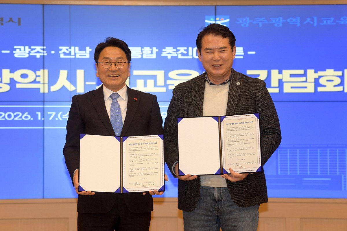 공동선언문에는 광주시교육청이 지역 소멸 위기 극복을 위한 광주·전남 대통합에 적극 공감하고, 통합특별시의 성공적인 안착을 위해 광주시와 긴밀히 협력한다는 내용이 담겼다.