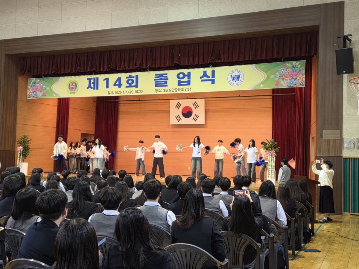 대전도안중학교 배은영 교장은 “여러분이 보여준 노력과 성장은 대전도안중의 자랑”이라며 “앞으로 어떤 길을 가든 배움에 대한 열정과 서로를 존중하는 마음을 잊지 않기를 바란다”고 격려했다.