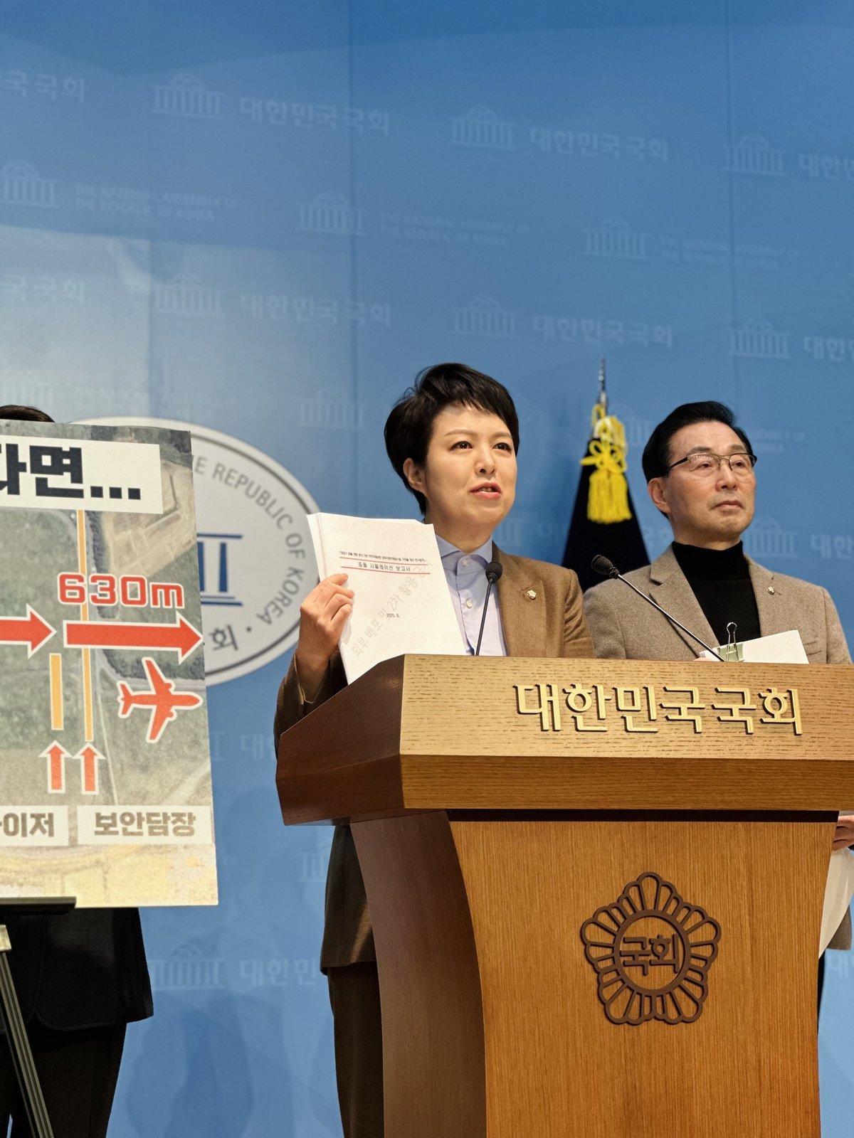 [국회의정저널] 국민의힘 김은혜 국회의원 이 2026년 1월 9일 이재명 정부와 민주당을 상대로 △둔덕 시설 관련 중처법 적용위한 현행법 개정 △2020년 개량공사 당시 국토장관 등 수사 대상 확대 △국정조사 미진할 경우 특검 추진을 담은 3대 요구를 공개 제안했음. 김은혜 의원은 이날 오전 9시 국회 소통관에서 12.29 여객기참사 국정조사 특위 소속 국민의힘 서천호, 이달희 의원과 함께 여객기 참사 3대 요구안을 담은 기자회견을 개최했음. 무안 국정조사 특위 국민의힘 의원들은 기자회견에서 "여객기 참사 이후 이재명 정부는 '로컬라이저 시설은 규정에 맞게 만들어졌다', '조종사의 과실이 원인일 수 있다'라며 참사 1년이 넘도록 진실 규명에 소극적인 태도를 견지해 왔다" "그러나 최근 국정조사를 앞두고 둔덕이 없었다면 전원 생존할 수 있었다는 비공개 시뮬레이션이 공개되고, 이제야 정부가 뒤늦게 '2020년 개량사업 당시 공항안전기준에 따라 정밀접근활주로 착륙대 종단에서 240미터 이내에는 부러지기 쉽게 개선했었어야 본다'라며 2020년 개량공사가 부실하게 진행된 점을 인정했다"라고 비판했음. '로컬라이저 등을 부러지기 쉽게 설치해야 하는 공항안전운영기준은 2003년 제정되었지만 시행시기를 2007년 무안공항 개항 당시가 아닌 2010년부터로 적용했다.'라는 국토부 입장에 대해서는 "무안공항은 착공 당시 '동북아 전진기지'로 불리며 온 국민의 기대를 모은 만큼 개항 시기를 충분히 예측 가능한 상황이었다.