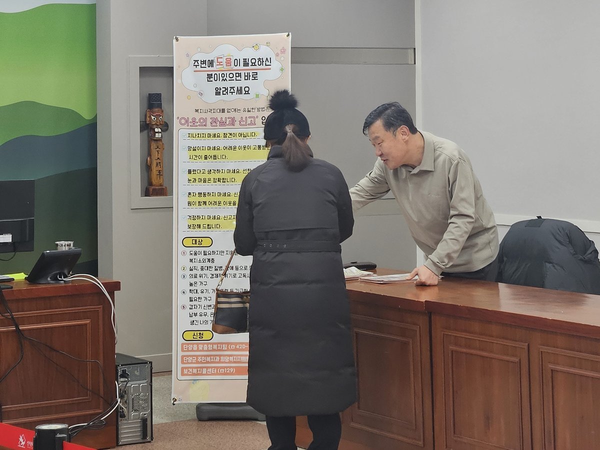 특히 행정복지센터를 방문한 민원인을 대상으로 △ 복지사각지대 발굴 안내문 배부 △ 위기가구 신고 방법 안내 △ 맞춤형복지서비스 소개 등을 실시하며, 이웃의 어려움을 주민 스스로 발견하고 행정과 연결하는 참여형 복지를 집중 홍보하고 있다.