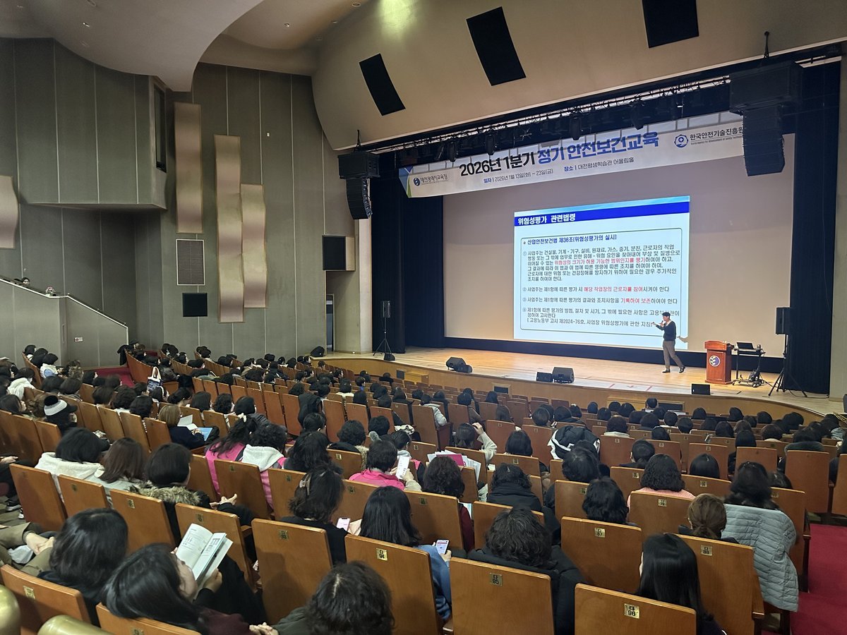 [국회의정저널] 대전시교육청은 1월 13일부터 23일까지 총 6회에 걸쳐 대전평생학습관 어울림홀에서 공립학교 및 기관 소속 현업 근로자 2378명을 대상으로 ‘2026년 1분기 정기 안전보건교육’을 실시한다고 밝혔다.