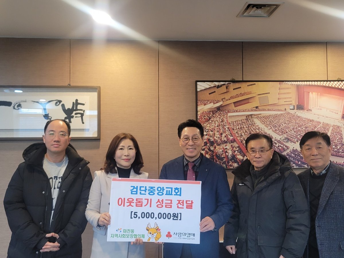 [국회의정저널] 인천 서구 마전동 지역사회보장협의체는 지난 14일 검단중앙교회로부터 이웃돕기 성금 500만원을 전달받았다.