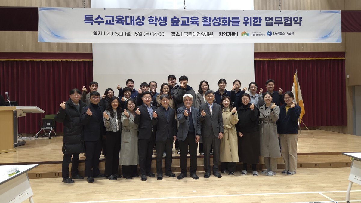 대전특수교육원 권순오 원장은 “이번 협약은 특수교육 가족 모두가 숲을 통해 심신을 회복하고 치유할 수 있는 기회를 마련했다는 점에서 큰 의미가 있다”며, “앞으로도 양 기관이 한뜻으로 협력하여 숲을 통한 정서적 안정을 도모할 수 있도록 아낌없이 지원하겠다”고 밝혔다.